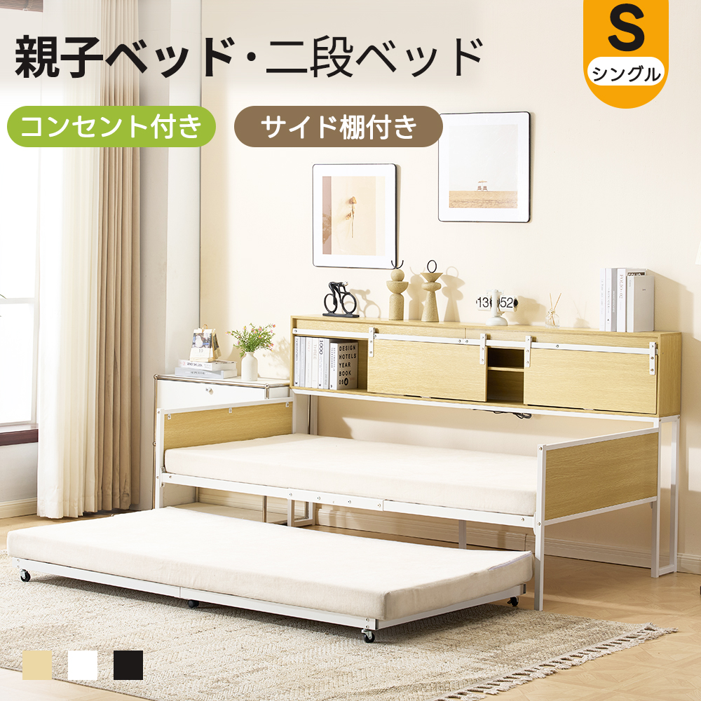 【爆買WEEK +5%】2段ベッド 親子ベッド シングル 大人 子供ベッド コンセント付き 宮棚付き 子供部屋 ベッド スチールベッド ベッドフレーム 北欧風