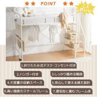 システムベット ロフトベッド 子供 パイプベッド シングル コンセント付き 収納付き ラック棚付き 耐荷重150kg 北欧風 子供ベッド ド スチール 耐震