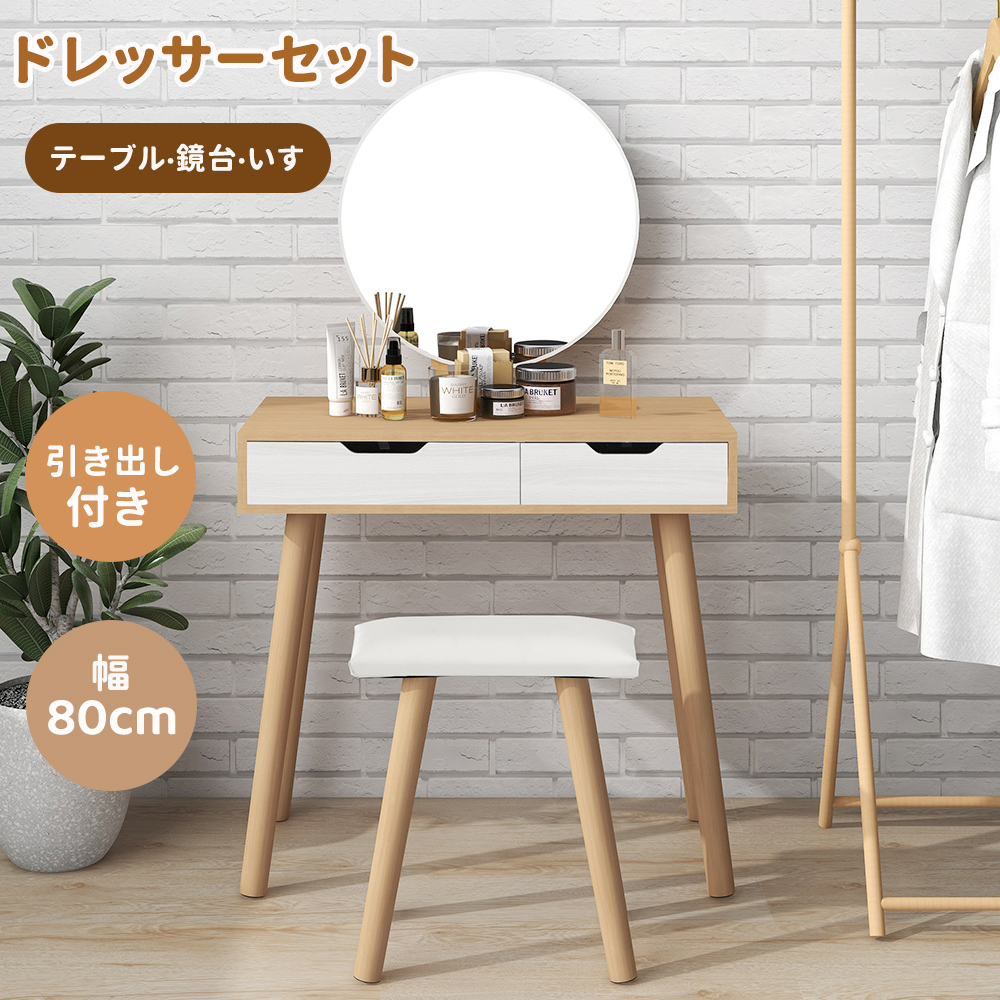 ドレッサー 化粧台 コンパクト 幅80cm デスク スツール付き 収納 ドレッサーセット 可愛い おしゃれ メイク台 メイクボックス シンプル 可愛い