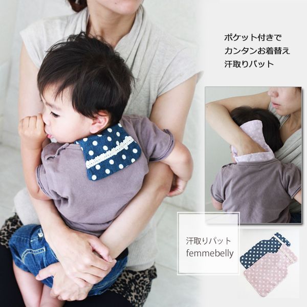 汗をかいたら、ベビーの背中に入れた汗取りパットをサッと交換するだけでOK。