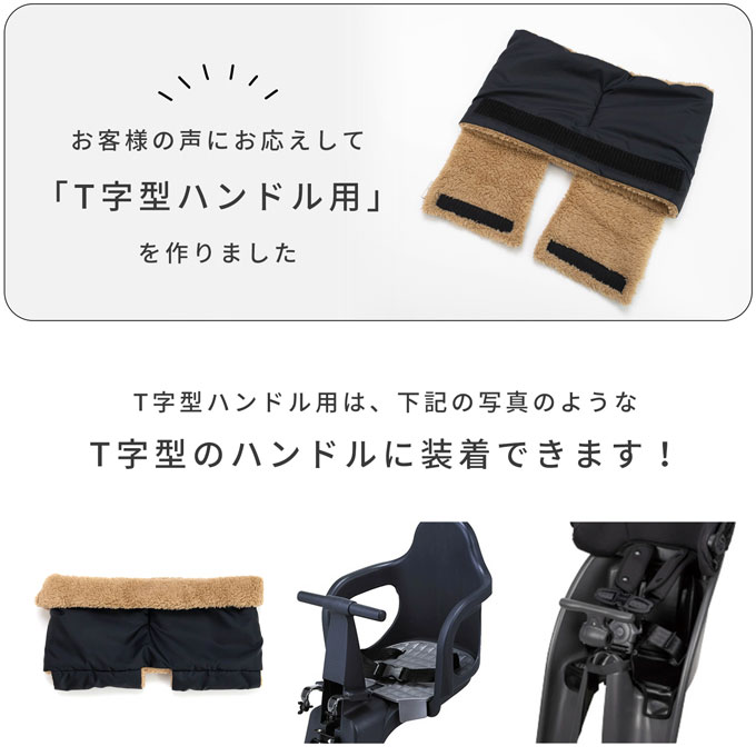 自転車 T字ハンドルも装着可能 チャイルドシート ハンドル防寒カバー 子供乗せ用 前・後ろ共用 暖か 防寒 かわいい ボア ベビーカー 1点ならメール便発送OK