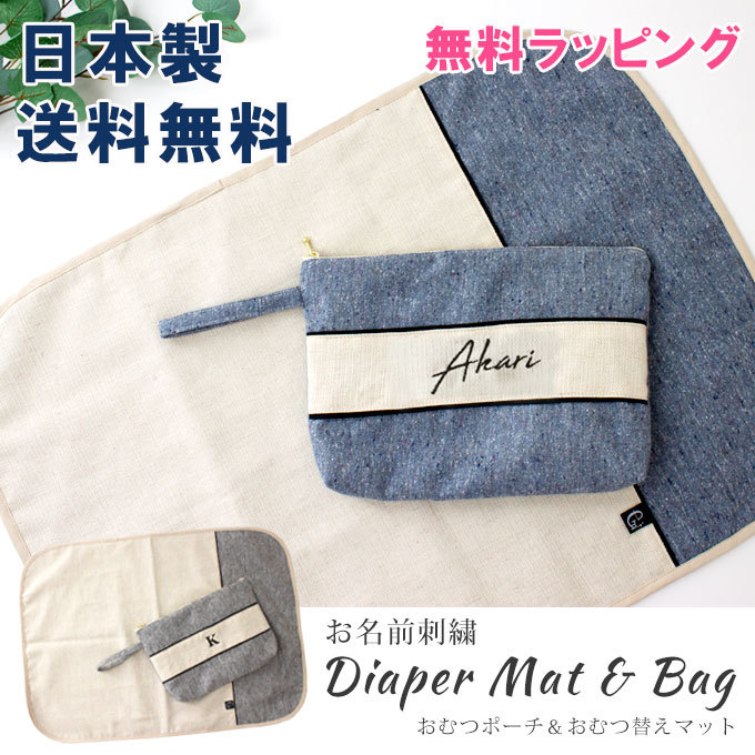 送料無料 名入れ 刺繍 おむつポーチ & おむつ替えシート セット 大容量 オムツポーチ オムツ替えシート ブランド 1点ならメール便配送OK 日本製