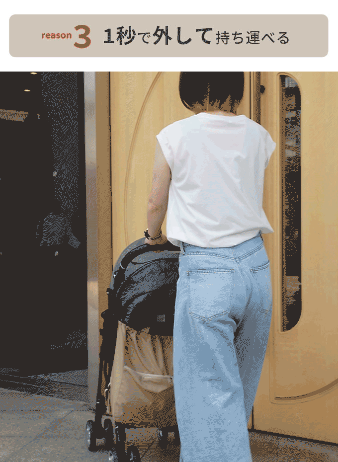 レストランや遊園地などベビーカーを置いていく場面でもサッと取り外して、