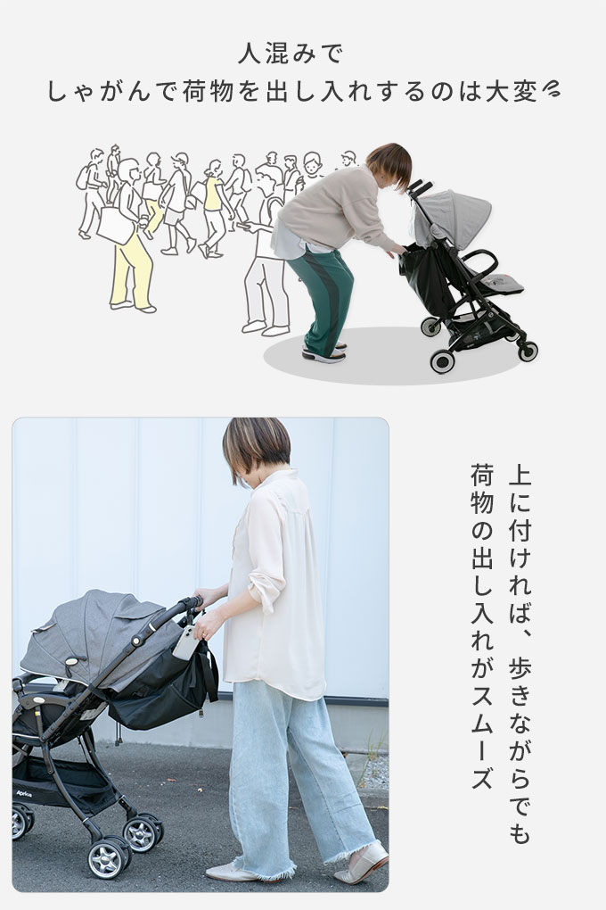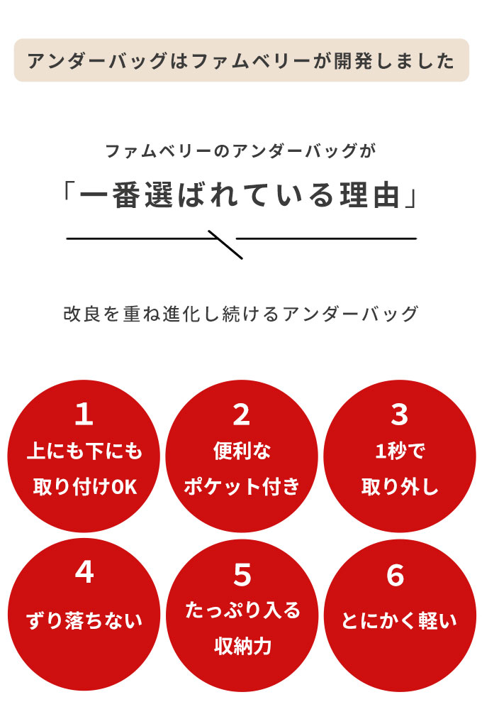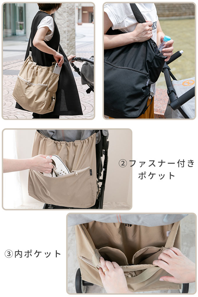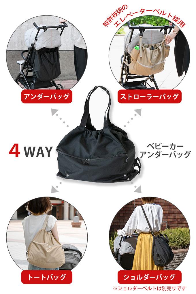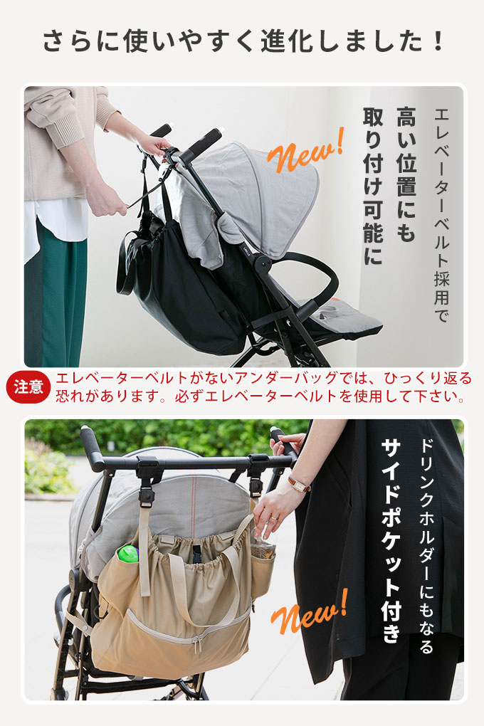 進化型 上にも装着OK ベビーカーアンダーバッグ 4wayモデル ポケット付き 特許取得済 1秒で取り外し ベビーカーバッグ 大容量 撥水 ファムベリー
