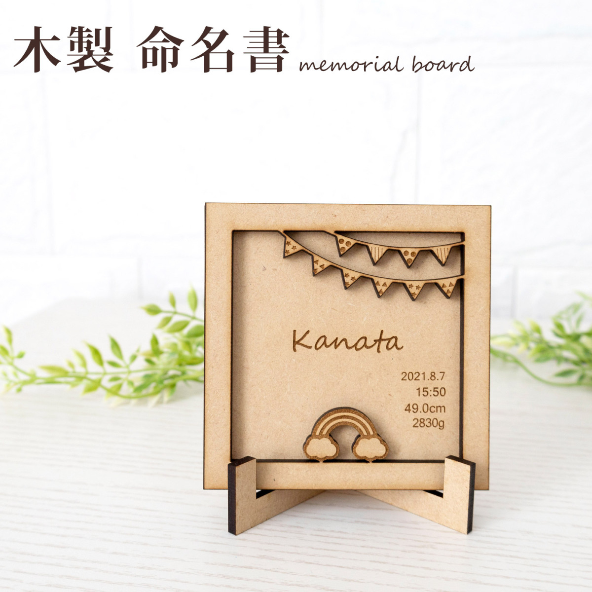 お名前(アルファベット および 漢字)・生年月日・出生時間・身長・体重を刻印いたします。