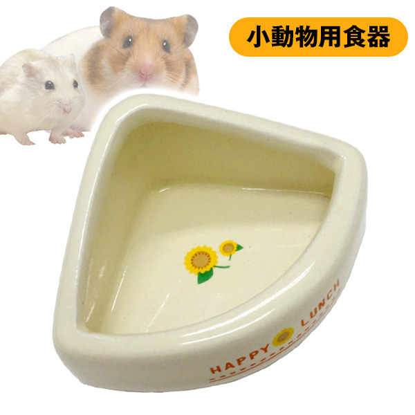 三晃商会 ハッピーディッシュ(コーナーS) ハムスター デグー リス フクロモモンガ 小鳥 小動物 ペット用 食器 陶器 扇形 可愛い 低め(NK)