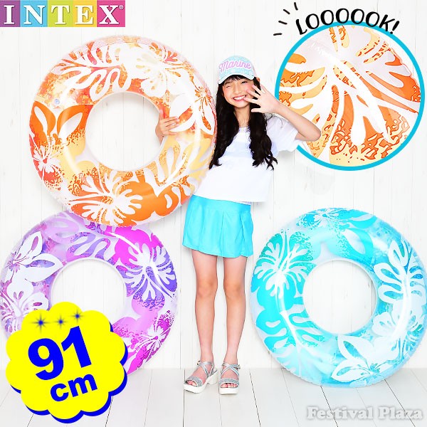 インテックス うきわ クリアカラー 浮き輪 59251 91cm INTEX うきわ 浮輪 色柄指定不可 送料無料 ポスト投函 [NKP] 縁日 景品 問屋 お祭り 子供 ハイビスカス柄