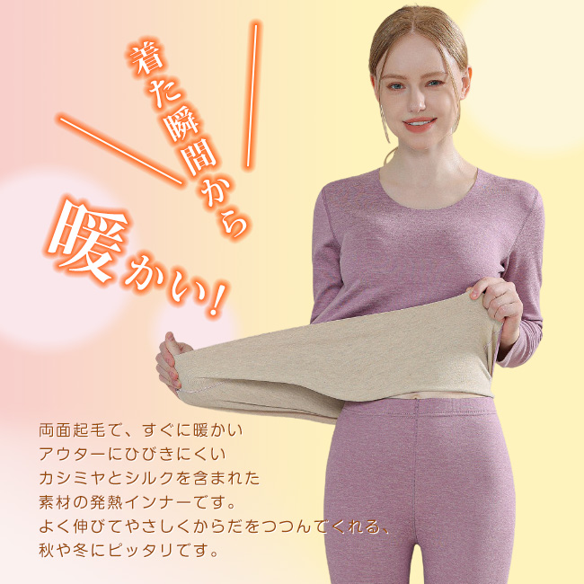 特徴 | ・寒い季節にぴったりな裏起毛インナーは、柔らかく肌に優しい素材で作られており、ふんわりとした起毛感が体温をしっかりと保持します。特に敏感肌の方にも安心してお使いいただけます。肌触りが良く、ストレスフリーな着心地で、寒い冬でも快適に過ごせます。 ・この裏起毛インナーは、デザイン性にもこだわり、シンプルでありながら華やかな印象を与えます。着るだけで暖かく、さらに美しいシルエットを作り出すフィット感。寒い季節でもオシャレを楽しみながら、しっかり暖かく過ごせるアイテムです。 ・毎日のコーディネートに欠かせない裏起毛インナー。シンプルでありながら、しっかりとした暖かさを提供します。秋冬の寒い日には、これ一枚で快適な暖かさが実感でき、重ね着も楽にできます。デイリーに使える便利なアイテムです。 ・柔らかく暖かい裏起毛インナーは、冬の寒さをしっかりとガードし、快適な着心地を提供します。ストレッチ素材を使用しているので、動きやすく、体にフィットして無理なく着ることができます。寒い季節のお出かけにぴったりなアイテムです。 ・裏起毛インナー上下セットは、しっかりと体にフィットしながらも動きやすい設計。寒い季節にも快適に過ごせる保温性を持ちつつ、軽やかな着心地を提供します。日常のコーディネートとしても使えるシンプルでスタイリッシュなデザインが魅力です。 |