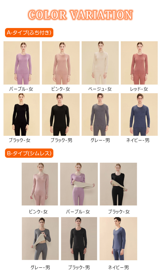 カラー | A-TYPE-パープル-女 A-TYPE-ピンク-女 A-TYPE-ベージュ-女 A-TYPE-レッド-女 A-TYPE-ブラック-女 A-TYPE-ブラック-男 A-TYPE-グレー-男 A-TYPE-ネイビー-男 B-TYPE-ピンク-女 B-TYPE-パープル-女 B-TYPE-ブラック-女 B-TYPE-グレー-男 B-TYPE-ブラック-男 B-TYPE-ネイビー-男 |