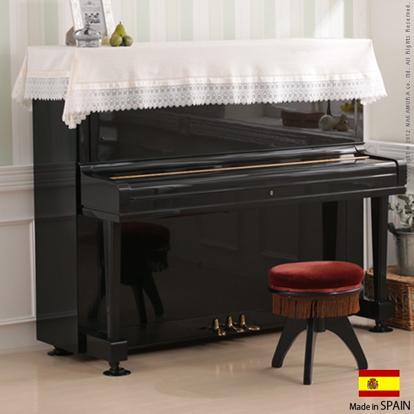 商品について:幅広レースを贅沢にあしらったアップライトピアノ用のトップカバーです。裾を彩るたっぷりレースでピアノをドレスアップ。カバーをかけるだけでお部屋の印象も明るくイメージチェンジ。同生地のチェアカバー(別売り)とあわせてお使いいただくとより一層華やかです。手洗い・ドライクリーニングが可能なので末永くお使い頂けます。高品質でお洒落なスペイン製。