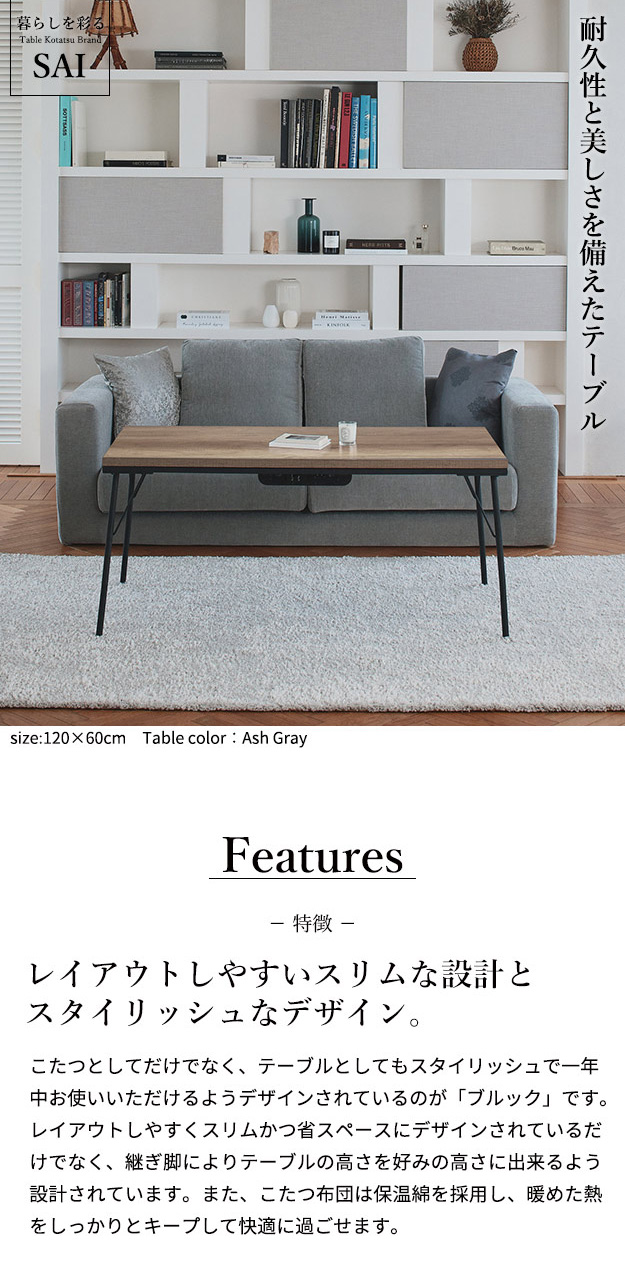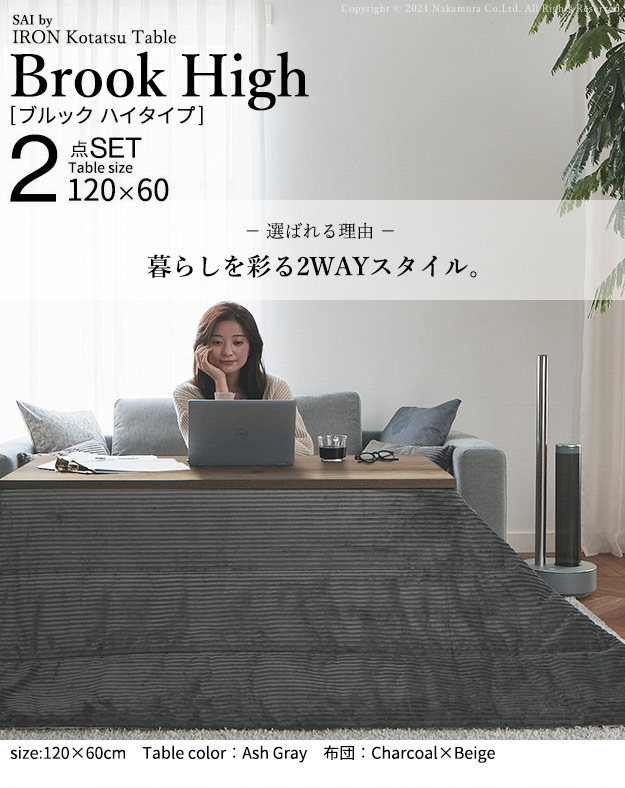 こたつ セット テーブル ハイタイプ 長方形 おしゃれ ブルック120x60cmコーデュロイこたつ布団2点セット 古材風アイアン 高さ調節 ヴィンテージ風 ブラウン 木目