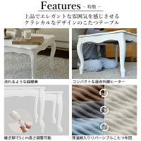 こたつ ローテーブル 長方形 ねこ脚こたつテーブル フローラ 105x60cm コーデュロイこたつ布団 2点セット 猫脚 おしゃれ かわいい アンティーク風 白 ホワイト
