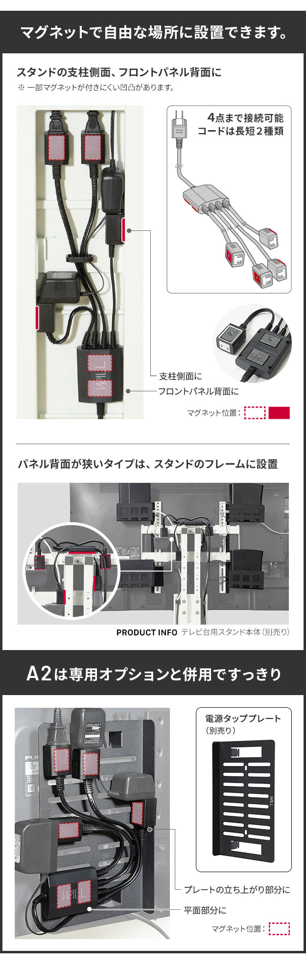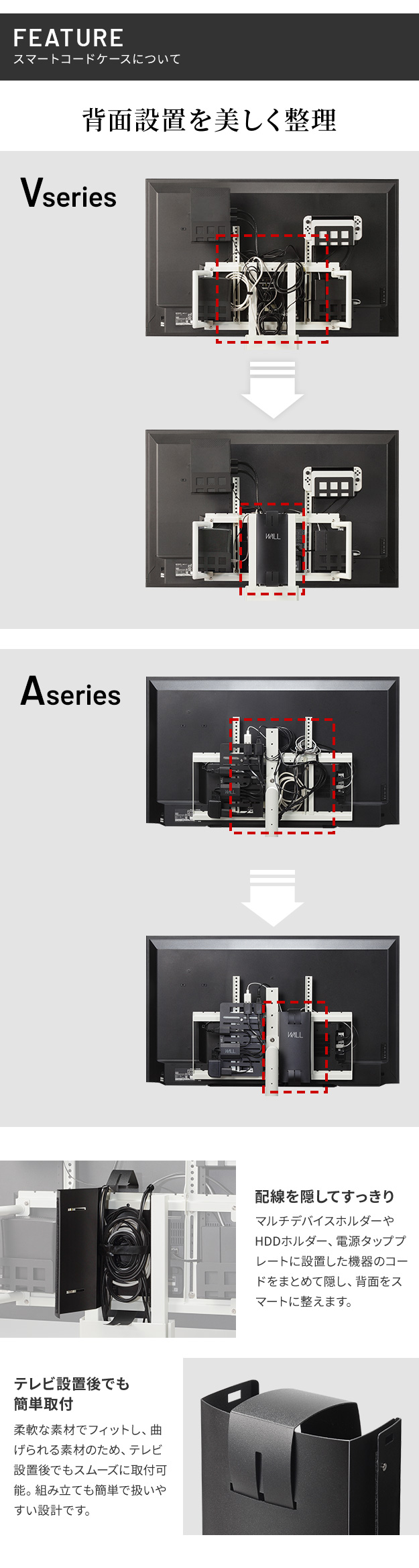 WALL テレビスタンド オプション Vシリーズ/A2対応 スマート設置オプションセット 電源タップ+コードケース コンセント 部品 パーツ ウォール EQUALS イコールズ
