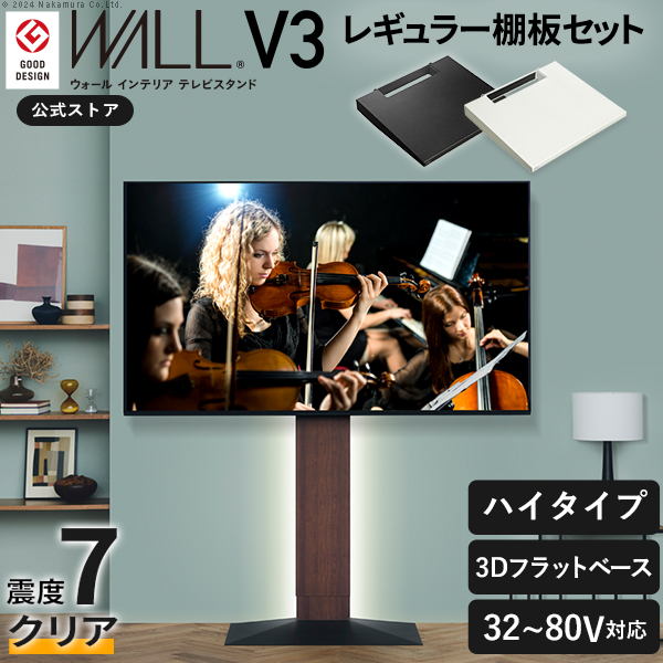 TVスタンド テレビ台 セット WALL テレビスタンド V3 ハイタイプ 32〜80v対応+棚板レギュラーサイズセット ウォール 白 ホワイト 木目 ブラック おしゃれ 人気
