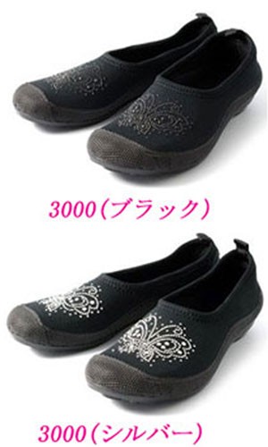 レディース スリッポン シューズ NSB3000 日本製 ストレッチ素材 屈曲性 軽量 かわいい 蝶柄 柄