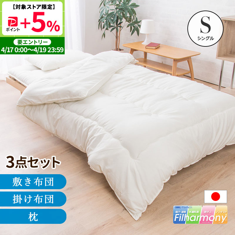 日本製 布団セット シングルサイズ 3点セット 東洋紡フィルハーモニー 抗菌 防臭 防ダニふとんセット 送料無料