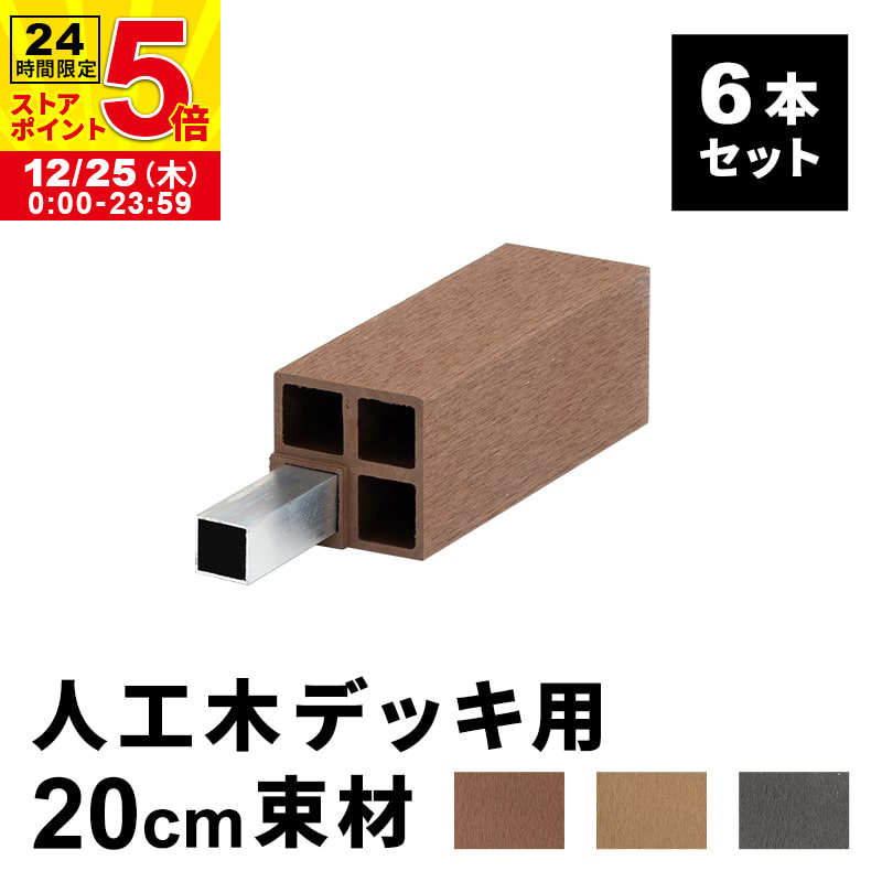 脚 木脚 人工木デッキ用 6本セット 高さ20cm DIY ウッドデッキ 人工木 おしゃれ キット 庭 組立 組み立て 束材 水洗いOK