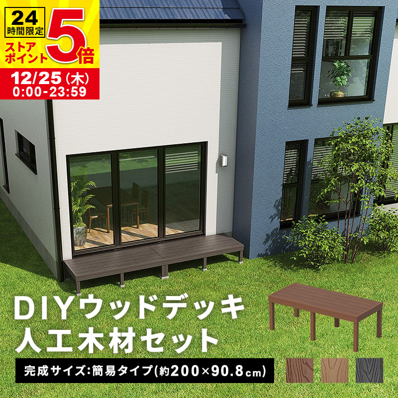デッキ 人工木 200×90.8cm 人工木デッキ 簡易タイプ DIY キット 庭 ガーデンデッキ ステージ エクステリア オープンテラス 組み立て DIYセット