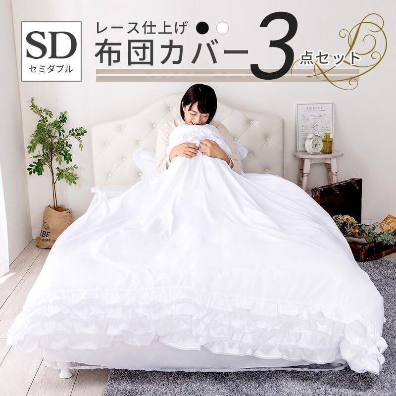 寝具 3点セット セミダブル フリル レース おしゃれ ピーチスキン オールシーズン 布団カバーセット 新生活 フリル仕上げ SDサイズ