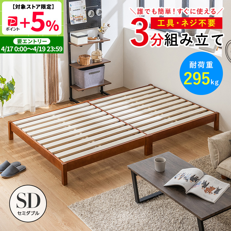 すのこベッド ベッド セミダブル 頑丈 すのこ ベッドフレーム ヘッドレス 工具不要 組み立て 簡単 スノコベッド パイン材 白 ホワイト シンプル 天然木