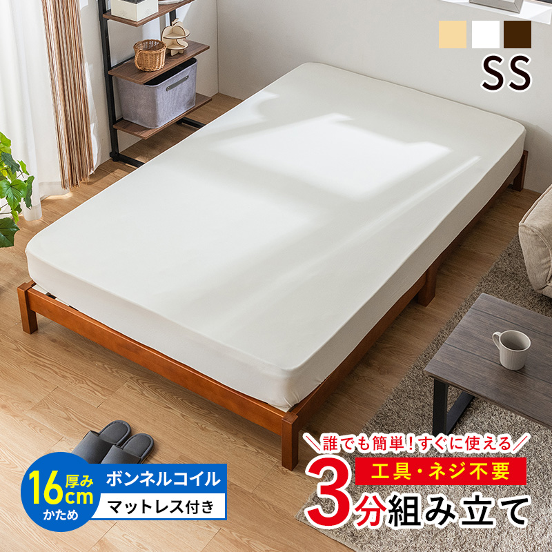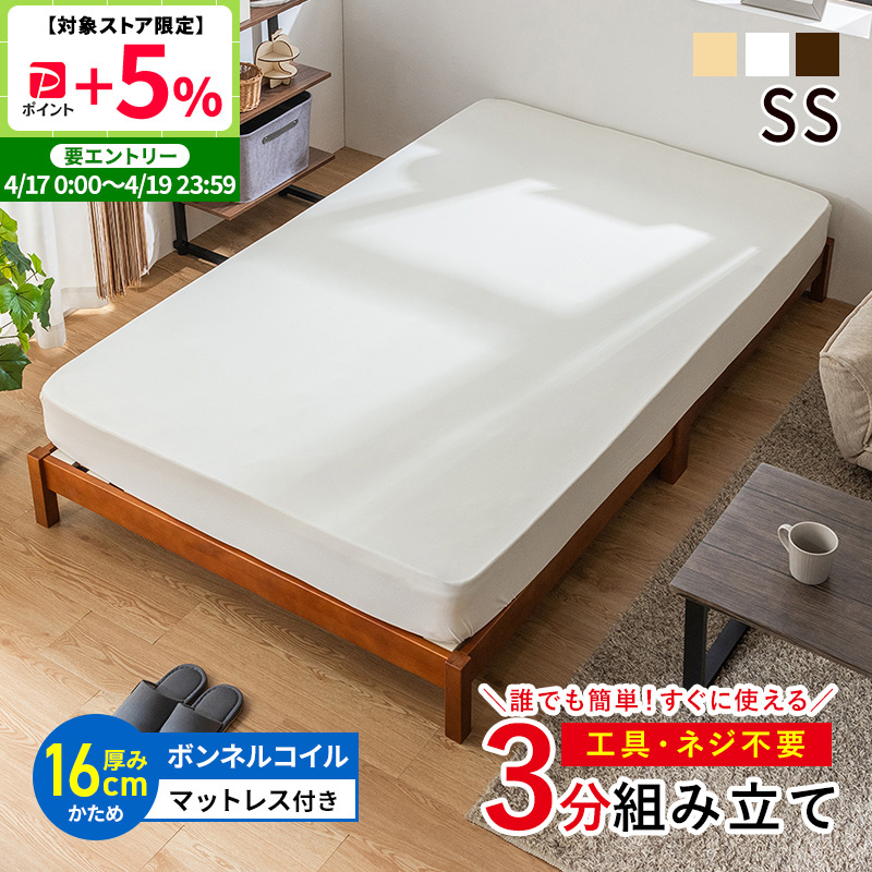 すのこベッド ベッド 工具不要 ネジ無し 簡単組み立て マットレス付 ボンネルコイル セミシングル パイン材 天然木
