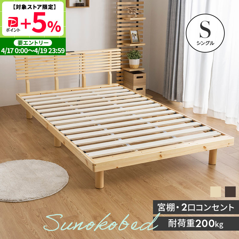 シングル ベッド 天然パイン材 すのこベッド 2口コンセント付き 宮付き