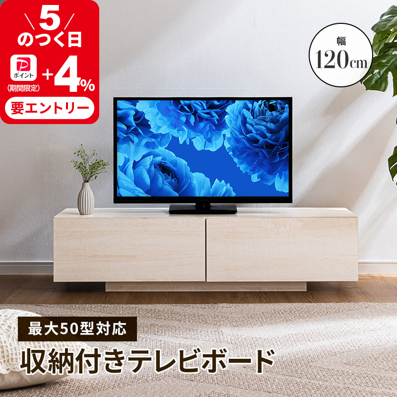 テレビ台 テレビボード テレビラック 引き出し収納 引き出し ローボード 収納 棚 TV台 TVボード 木目調 配線スマート 120cm ナチュラル ホワイト