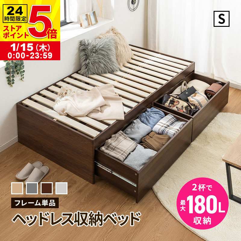 大容量 ヘッドレス ヘッドレスベッド 収納ベッド シングル チェストベッド ベッドフレーム 収納付き 引き出し付き 2杯ベッド すのこベッド 容量約180L