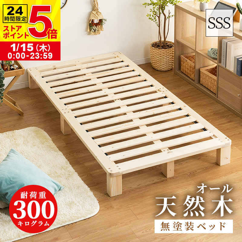 すのこベッド ベッドフレーム 天然木 無塗装 ヘッドレス ローベッド すのこ 頑丈 パイン材 ナチュラル 通気性 木製ベッド セミシングルショート