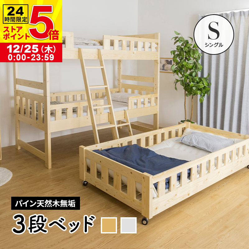 三段ベッド 3段ベッド 三段 ベッド 木製ベッド ベッドフレーム 二段ベッド 2段ベッド 木製3段ベッド トリプルベッド フレームのみ ナチュラル ホワイト 子供部屋