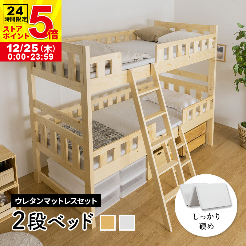 ベッド 木製2段ベッド ハイタイプ 低ホルムアルデヒド 木製ベッド シングル ウレタンマットレス付き