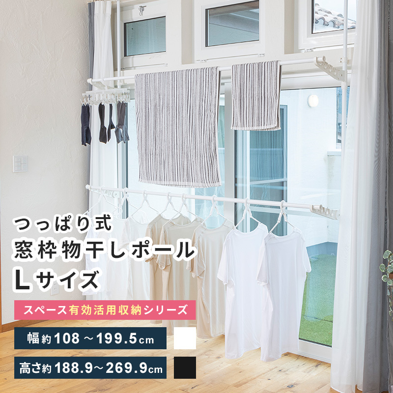 物干し 室内 窓枠物干し ポール つっぱり Lサイズ 洗濯ハンガーラック 室内干し 窓枠 屋内 物干しポール 物干しラック ハンガーポール コンパクト おしゃれ 伸縮