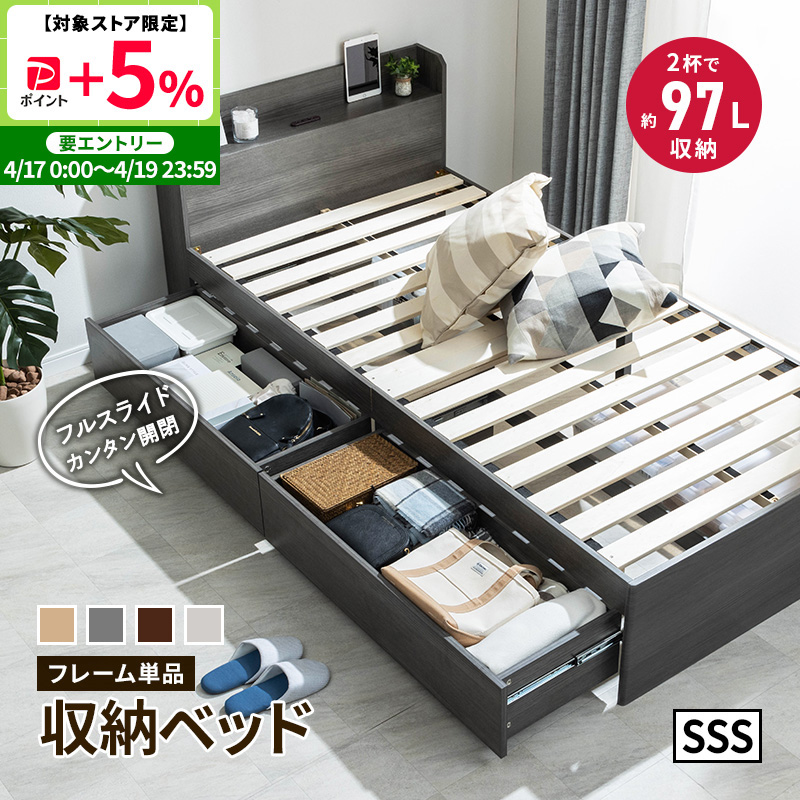 チェストベッド ベッド 収納付き セミシングルショート 収納ベッド 収納 大容量 引き出し付き 2杯ベッド すのこベッド コンセント付き 宮棚 宮付き 容量約97L