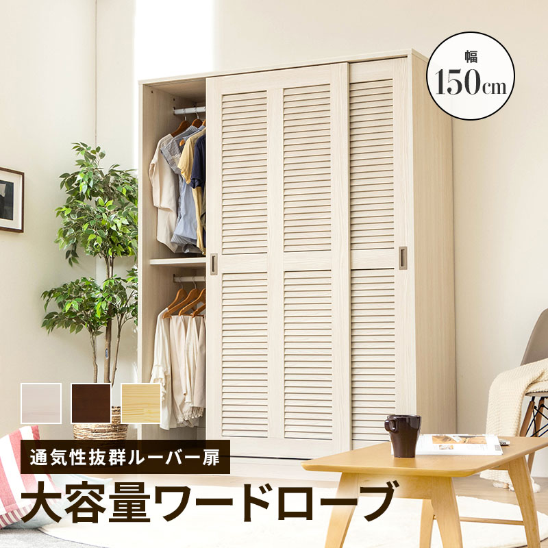 ワードローブ クローゼット ハンガーラック 奥行き 深い 大容量 衣類 洋服 収納 引き戸 扉 おしゃれ ルーバー 棚板 壁面収納 衣類収納 幅150cm 組立