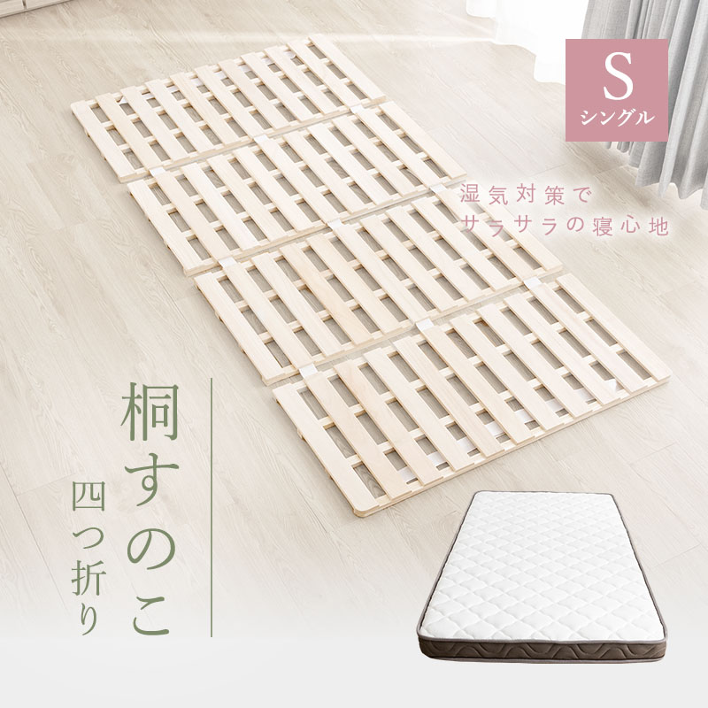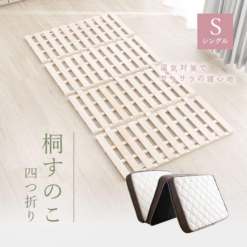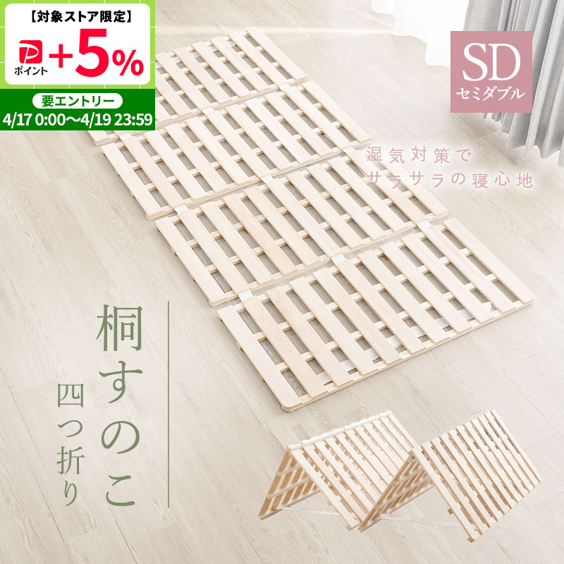 四つ折り すのこマット セミダブル 折りたたみ ベッド すのこベッド カビ対策 ダニ防止 湿気対策 通気性 軽量 桐 すのこ 折りたたみベッド 折りたたみ式 木製