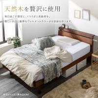 ベッド ダブル 天然木 ベッドフレーム コンセント付き ウォルナット ウォールナット ヘッドボード 無垢材 頑丈 すのこベッド 脚 高さ調節 木製ベッド 棚付き