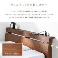 ベッド シングル 天然木 ベッドフレーム コンセント付き ウォルナット ウォールナット ヘッドボード 無垢材 頑丈 すのこベッド 脚 高さ調節 木製ベッド 棚付き