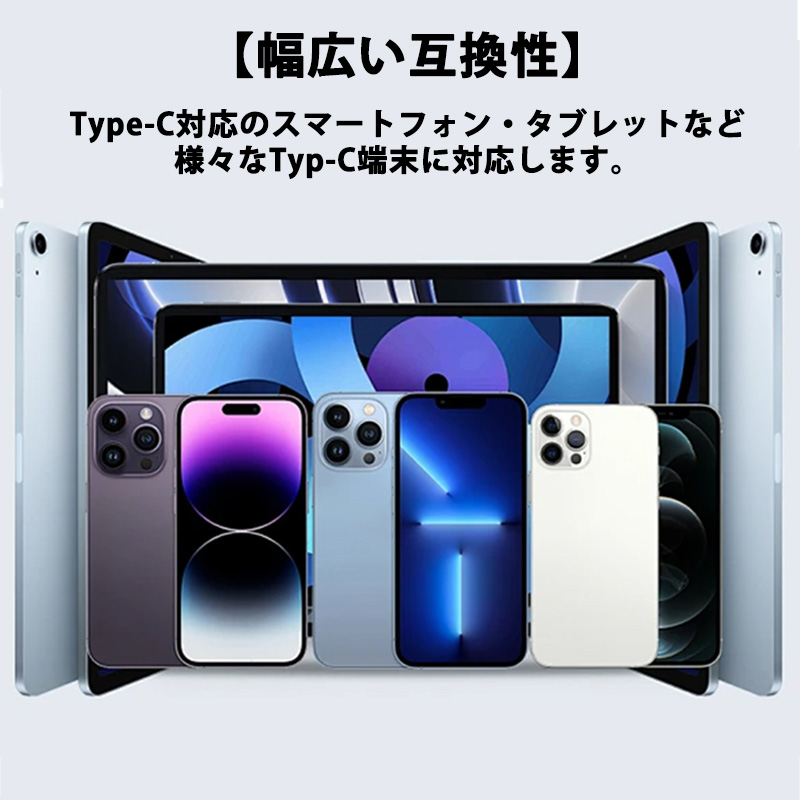 幅広い互換性でスマートフォン・タブレット・ゲーム機などの様々なUSB-Cデバイスに対応できるケーブルです。