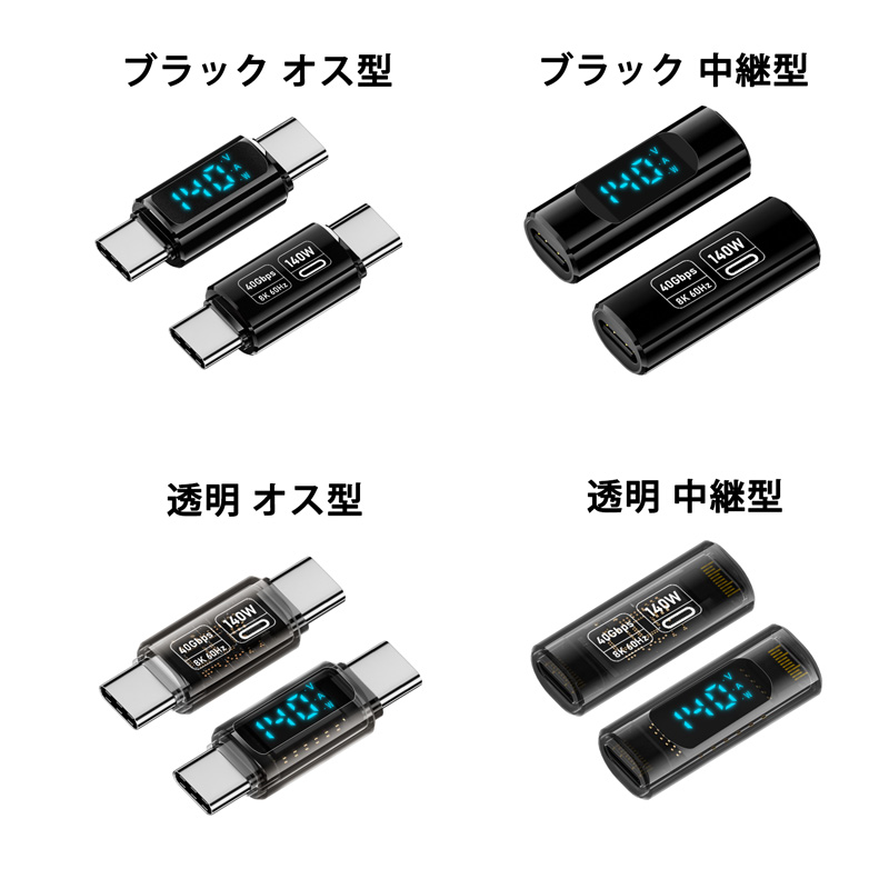LED 出力 スクリーン表示 PD3.1 140W USB4 コネクター Type-C to Type-C 40Gbps 8K 60Hz データ転送 映像出力 充電 OTG機能 タイプC アダプター 中継型