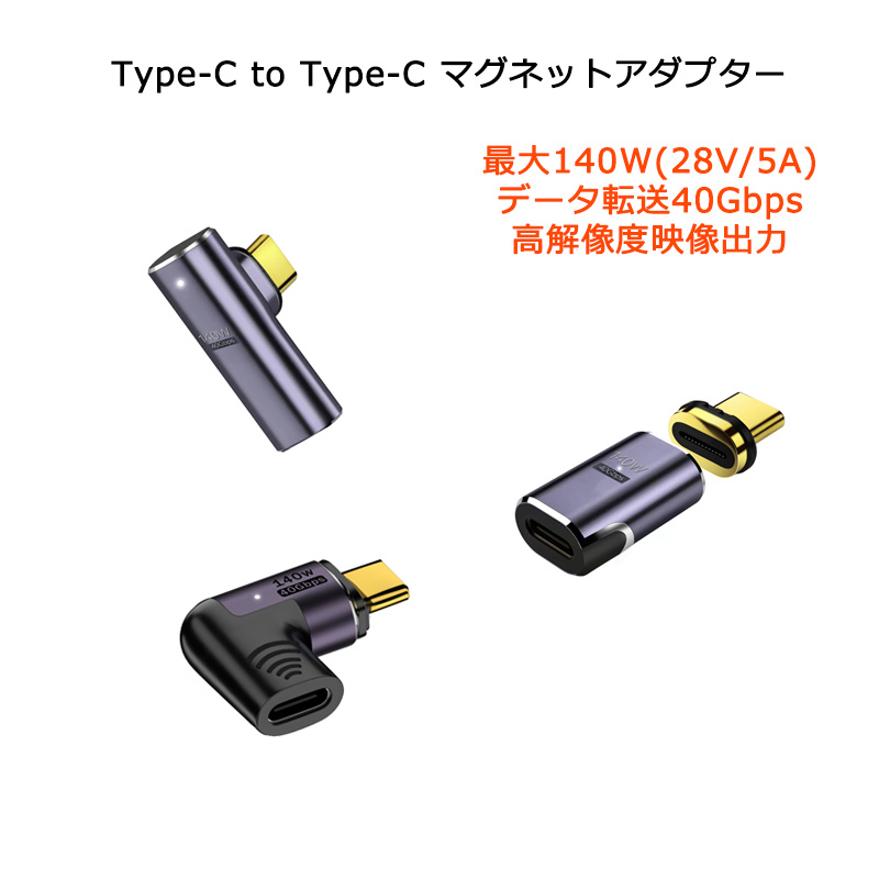 マグネットアダプター TypeC to TypeC 140W 40Gbps 5A コネクタ 高速データ転送 8K@120Hz 映像出力 USB4.0充電ケーブル用 Type-C 端子 マグネット タイプC