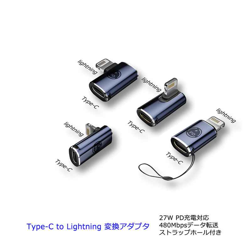 USB Type-C to Lightning 変換アダプタ PD充電対応 タイプC ライトニング コネクタ 急速充電 データ転送 480Mbps 変換コネクタ ストラップホール