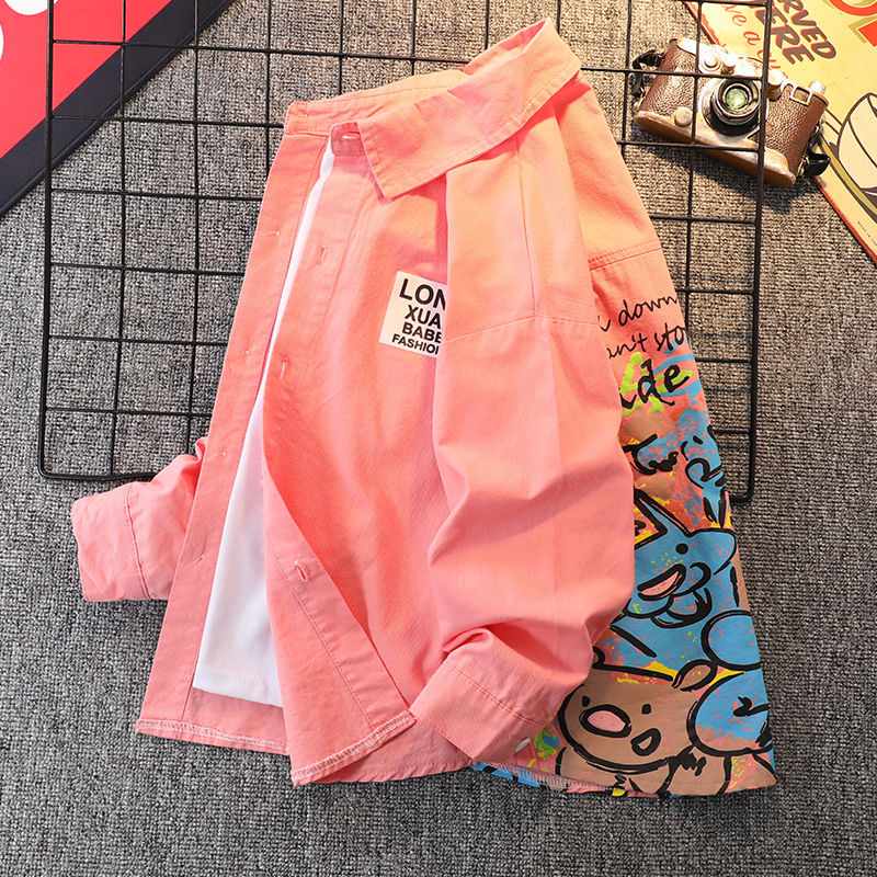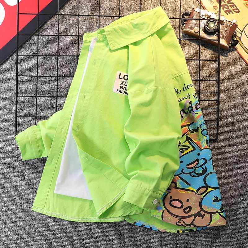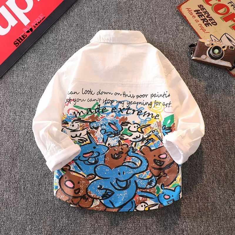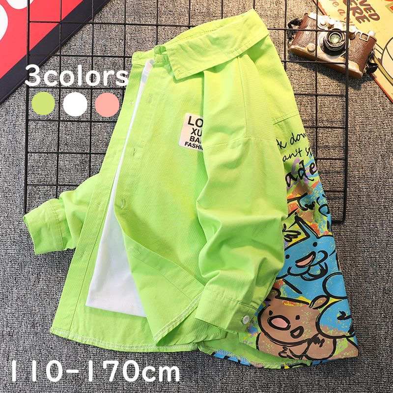 お取り寄せ商品 シャツ キッズ 長袖シャツ 男の子 110-170cm 3colors カジュアルシャツ プリント カートゥーン柄 おしゃれ かっこいい キッズファッション 韓国ファッション