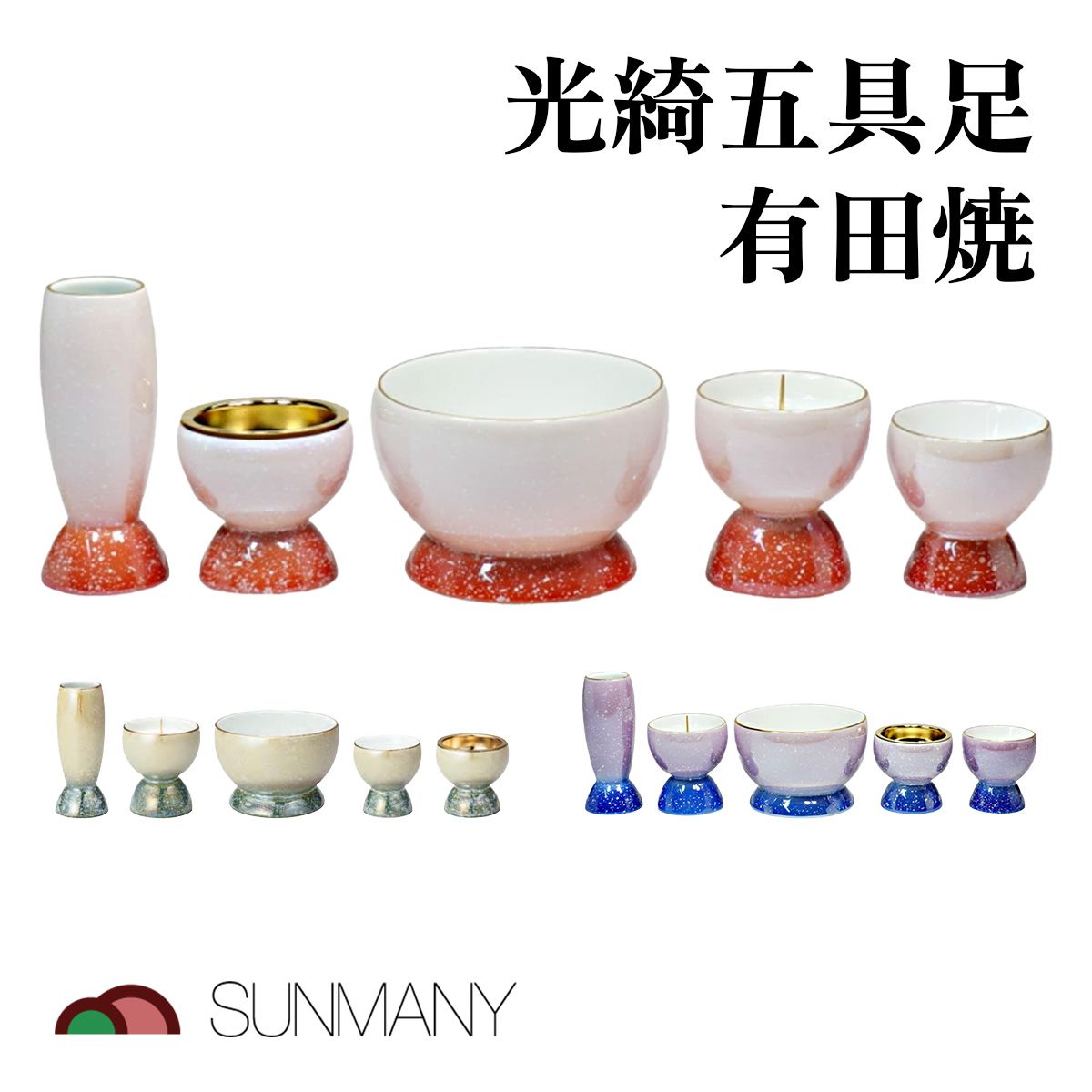 サンメニー 光綺五具足 有田焼 仏具セット 花立 香炉 火立 仏壇用 供養 法要 日本製 陶器 モダン 和風 伝統 ミニ仏壇 家庭用 祭壇 上品 高級 インテリア
