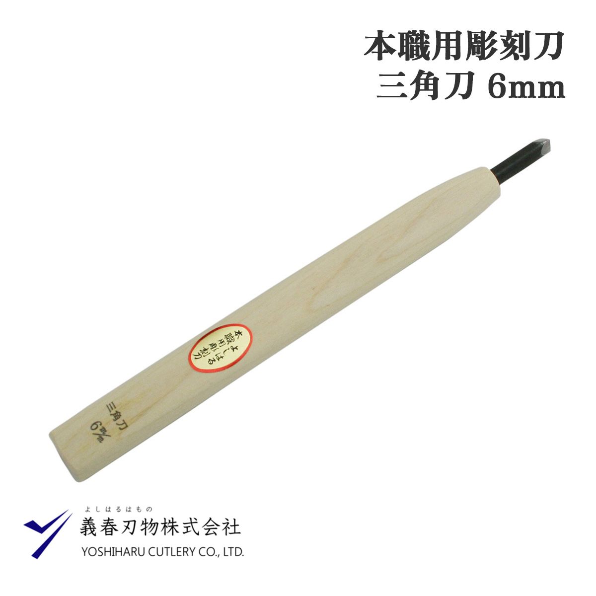 義春刃物 よしはる本職用彫刻刀 三角刀 6mm 木彫り用 プロ仕様 安来鋼青紙製 日本製 職人用 高耐久 朴の木柄 研ぎ直し可能 伝統工芸 30g 軽量
