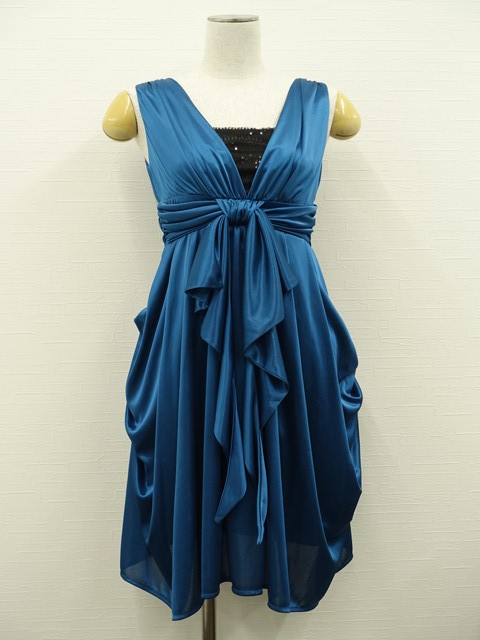SECTION ひざ丈 デザインネック 洗えるドレス ブルー系