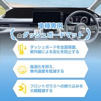 車種専用設計車種専用設計なので、違和感なくぴったりフィット、ダッシュボードカバーを装着することでダッシュボードをちゃんと守ります。UV防止加工済み手触りの良い柔らかな質感の起毛スエード生地、UV防止加工済みでダッシュボードが劣化やキズから保護します。映り込み防止ダッシュボードマットがフロントガラスへの映り込みを大幅軽減し、運転による疲労感を和らげます。クリアな視界でストレスの少ないドライブを体感頂けます。断熱効果直射日光にさらされるダッシュボード高温化を抑え、車内温度を低減します。ダッシュマットの完全な保護機能はダッシュボードを完璧な状態に保ちます。
