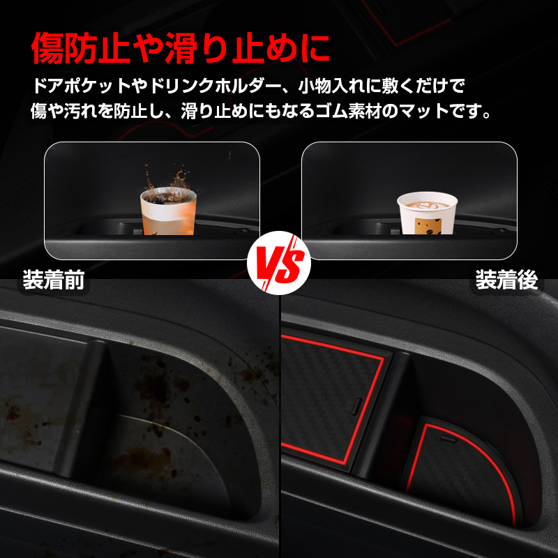 ドアポケットやドリンクホルダー、小物入れに敷くだけで傷や汚れを防止し、滑り止めにもなるゴム素材のマットです。
