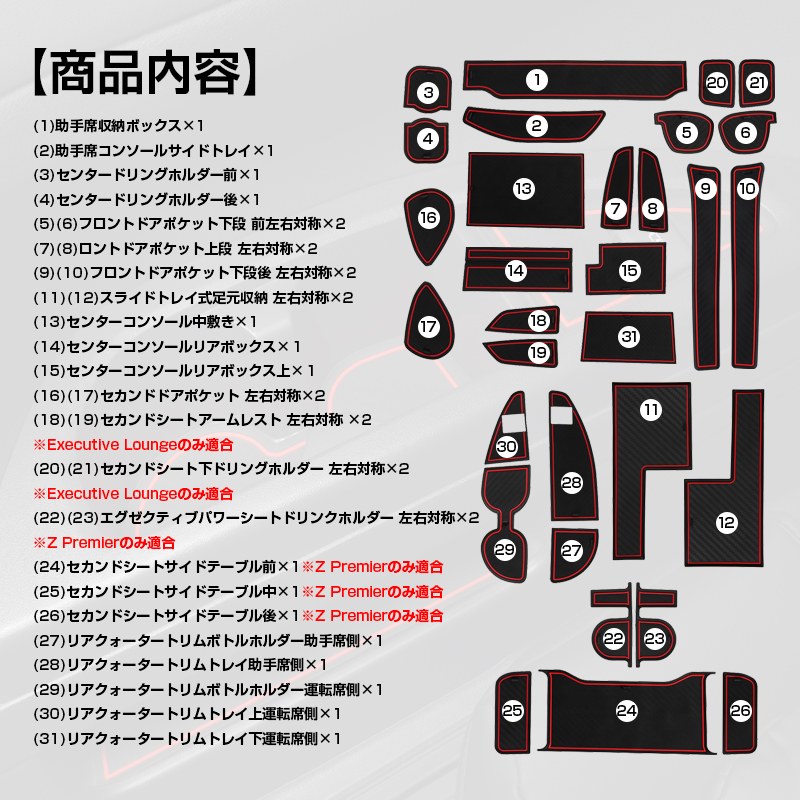 ★新型アルファード 40 ヴェルファイア 40ドアポケットマット ラバーマット レッド/ブラック/ブルー/ホワイト 4色可選択 31枚 水洗い可能 アクセサリー 内装