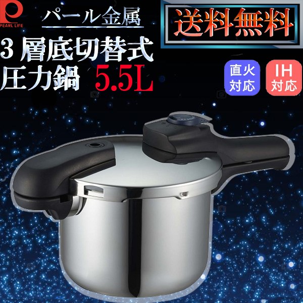 なべ 鍋 圧力鍋 パール金属 クイックエコ 3層底 切り替え式 5.5L 8合炊 ( AP10245374 / H-5042 ) (Q41CD)