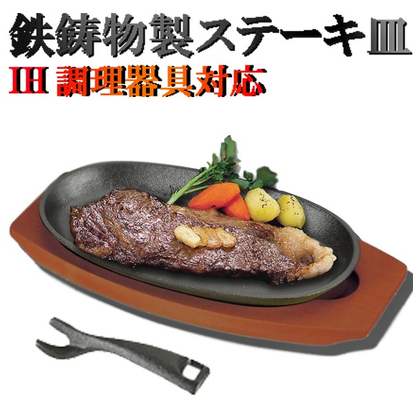 ●ステーキはもちろん! 焼きそばやハンバーグまでアツアツのまま食卓へ。 ●美味しさが数段アップ! ご家庭でファミレスのようなステーキ料理が楽しめます。 ●この商品は一般家庭用で調理するために使うものです。 ●流通段階での錆止め防止のために塗装を施してあります。 ●その後、油をたっぷり塗り、熱し油をしみこませてください。 ●油がなじむまでこびり付く事があります。 ●お手入れ後は必ず油を塗ってください。 ●つけ置き洗いや、食器洗い乾燥機で洗わないでください。 ●錆の発生や木製プレートの割れ・歪みの原因になります。 | |